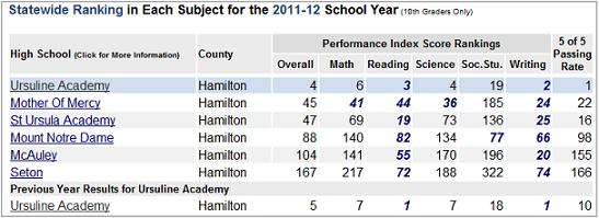 Once upon a time there was a very insightful education report that provided a different type of view of the top academic high schools in Ohio. It not only ranked the top schools in real numbers (i.e. not quartiles), but it also ranked how all of the schools performed on each subject matter test. It even included the public and private schools in the same report.